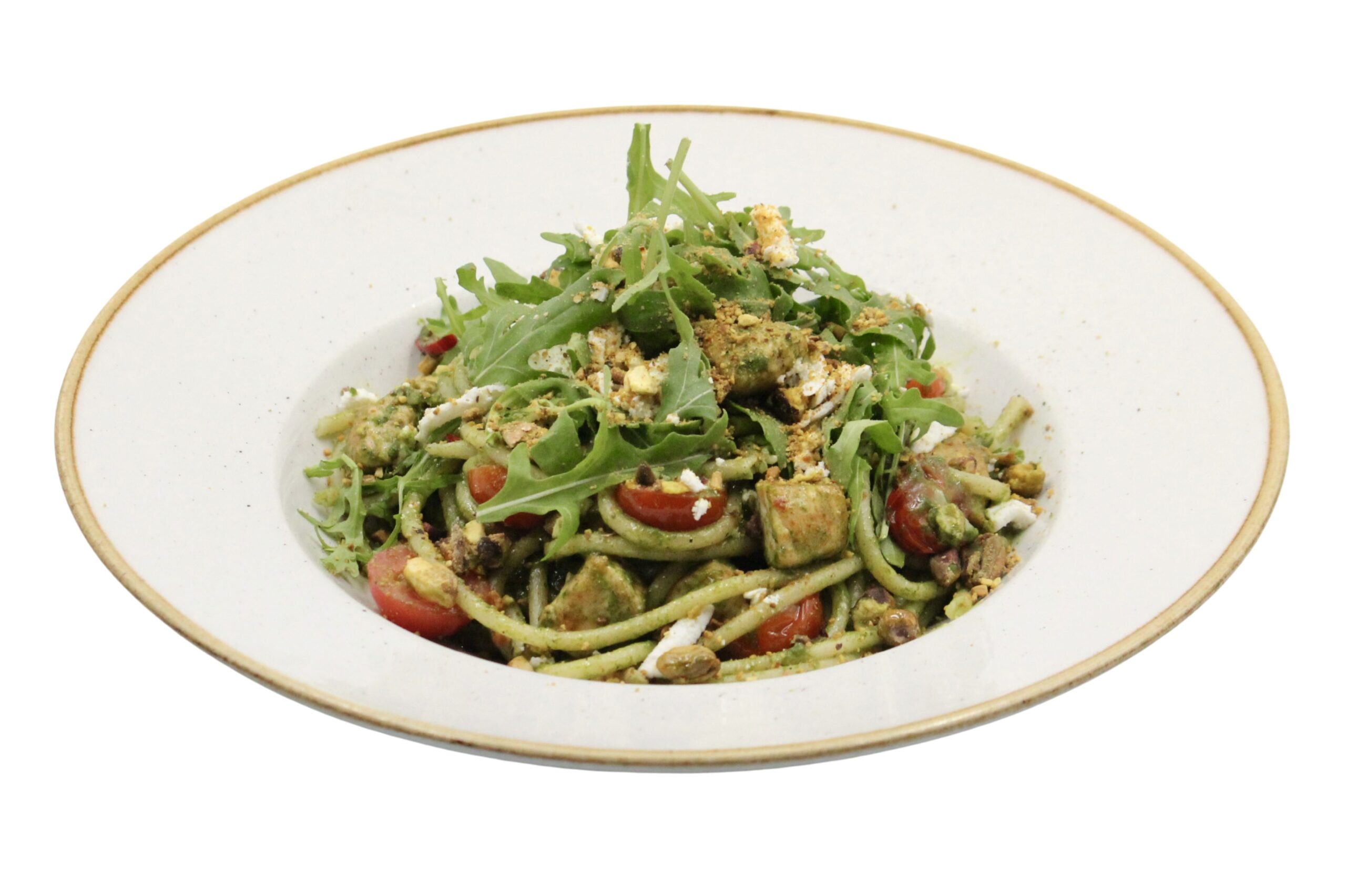 kurczak, gorgonzola, groszek, białe szparagi, brokuł, cebula, czosnek, orzechy włoskie, rukolą, sos śmietanowy / ok. 450 g